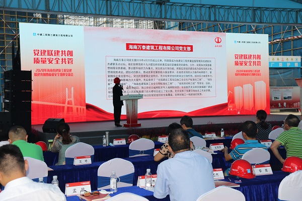 為了進一步加強黨建聯(lián)系點的溝通交流,繼續(xù)深入推進黨建聯(lián)創(chuàng)共建工作,鞏固抓黨建促工程質(zhì)量安全水平提升的成效。9月25日上午,2020年海南省建設(shè)工程黨建聯(lián)建共創(chuàng)暨質(zhì)量安全觀摩交流會在南光·西海灣項目部舉行。省住建廳機關(guān)黨委專職副書記劉志偉、省質(zhì)安局陳雷書記、省質(zhì)安局副局長劉長征、市質(zhì)安站站長符志明及各黨建聯(lián)創(chuàng)共建企業(yè)黨支部、新聞媒體等單位參加了此次活動。海南萬泰公司黨支部作為省住建系統(tǒng)黨建聯(lián)系點參加了會議,并做了黨建工作經(jīng)驗交流發(fā)言。