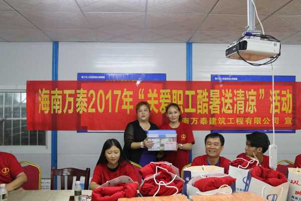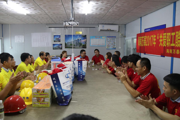 海南萬泰在追求企業(yè)發(fā)展的同時,始終把民工利益擺在重要位置,關愛民工工作生活。長期以來,海南萬泰都對一線工人的生產生活格外重視,通過節(jié)日慰問、送清涼等一系列活動,深切表達公司領導及同事對長期駐扎一線的項目工人的關懷之情。
