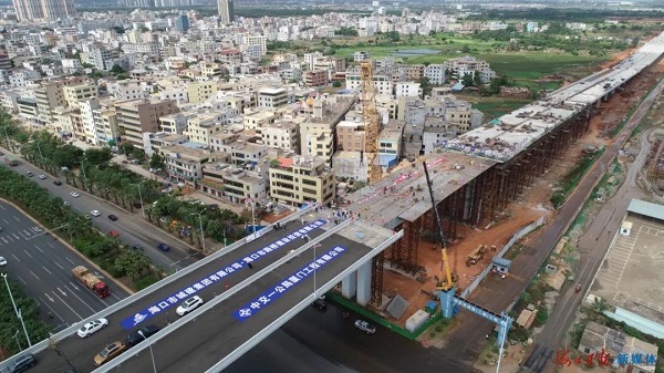 海秀快速路二期項(xiàng)目主線高架橋合龍。??谌?qǐng)?bào)記者 陳長宇 攝