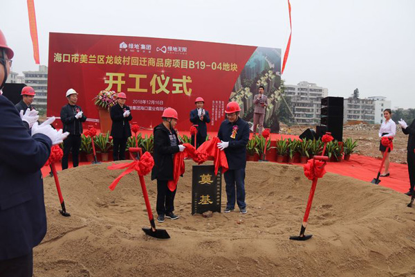 2018年12月16日上午10點(diǎn)18分,龍岐村項(xiàng)目B19-04地塊開工儀式在大英山東四路和大英山東二街交匯處隆重舉行。??谑姓魇站指本珠L王輝,美蘭區(qū)人大副主任、龍岐指揮部指揮長劉慧義,龍岐指揮部副指揮長譚顯知,綠地海南事業(yè)部工程總監(jiān)趙四清、合約部總監(jiān)陳梅、城市更新部總監(jiān)、龍岐項(xiàng)目總經(jīng)理魏和平、貴州建工集團(tuán)有限公司副總經(jīng)理李小峰、龍岐項(xiàng)目部負(fù)責(zé)人張小龍、海南建工集團(tuán)原董事長曹書明及美蘭區(qū)房屋征收局、項(xiàng)目指揮部、建設(shè)單位工作人員代表參加開工儀式。