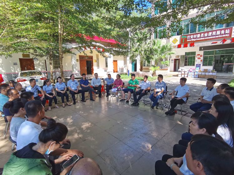 上午,陳雷局長(zhǎng)等領(lǐng)導(dǎo)帶領(lǐng)大家一同走訪參觀了打安村的村容村貌、特色產(chǎn)業(yè)、房屋建筑和群眾生產(chǎn)生活等情況。隨后,在打安村村委會(huì)召開了交流座談會(huì),駐村第一書記陳光明向各位領(lǐng)導(dǎo)匯報(bào)了打安村鄉(xiāng)村振興工作開展情況,介紹了當(dāng)前工作隊(duì)的主要任務(wù)是鞏固脫貧攻堅(jiān)成果,提出了需要協(xié)調(diào)解決的問題,并說明了下一步打安村的工作目標(biāo)。