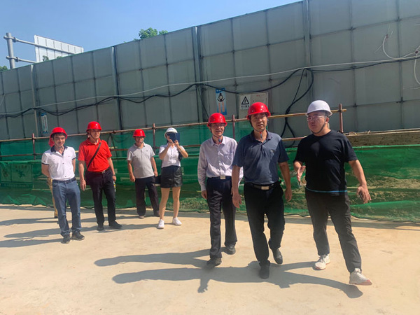 “國檢”檢查組的工作人員在張小龍總經(jīng)理的帶領下在博大·錦繡濱江工地進行實地檢查。