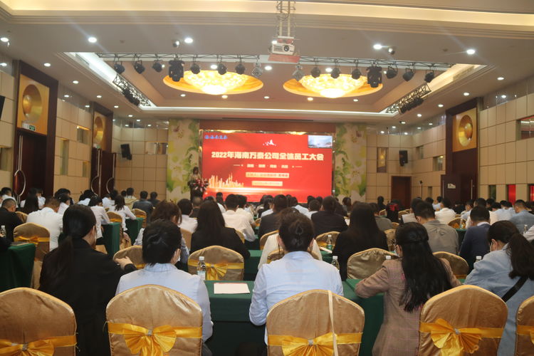 激情奮進新時代 同心共筑萬泰夢,1月16日,2022年萬泰集團全體員工大會在海口寶發(fā)勝意酒店成功召開,會議全面總結(jié)了2021年萬泰生產(chǎn)經(jīng)營情況,研判形勢,研究部署2022年重點工作,推動萬泰集團工作再上新臺階??偨?jīng)理張小龍、常務(wù)副總經(jīng)理顏利及全體員工近150人參加了會議。本次會議嚴格落實海南省疫情防控政策要求,采取“現(xiàn)場+視頻連線”的形式召開,會議由總經(jīng)理助理曹珊珊主持。
