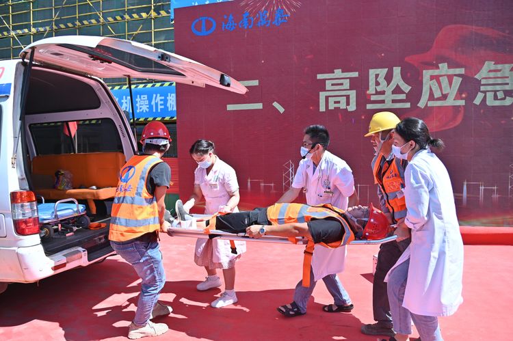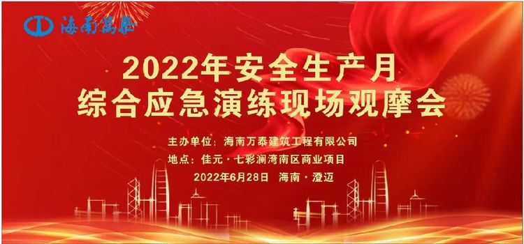 為貫徹落實(shí)習(xí)總書(shū)記關(guān)于安全生產(chǎn)重要論述,以黨建引領(lǐng)促進(jìn)安全生產(chǎn),全面提升項(xiàng)目質(zhì)量管理水平,增強(qiáng)安全責(zé)任意識(shí),按照上級(jí)相關(guān)主管部門(mén)對(duì)開(kāi)展“安全生產(chǎn)月”活動(dòng)的通知要求,結(jié)合第21個(gè)全國(guó)“安全生產(chǎn)月”,2022年6月28日,海南萬(wàn)泰建筑工程有限公司在七彩瀾灣南區(qū)商業(yè)項(xiàng)目部成功舉辦了2022年“安全生產(chǎn)月”綜合應(yīng)急演練觀摩會(huì)。省住建廳安全行業(yè)專家劉輝輝,澄邁縣住房和城鄉(xiāng)建設(shè)局莫丁,澄邁縣應(yīng)急管理局冼厚霖,澄邁縣質(zhì)監(jiān)站王廣彬,中豪威爾房地產(chǎn)有限公司甲方代表孫志明,海南藍(lán)城君潤(rùn)科技有限公司副總經(jīng)理陳自衡、工程部經(jīng)理張凡春,杭州巨烽建設(shè)工程項(xiàng)目管理有限公司總監(jiān)朱冬風(fēng),公司常務(wù)副總經(jīng)理顏利、副總經(jīng)理吳坤芳等相關(guān)人員參加本次觀摩會(huì)。澄邁縣老城消防救援特勤站、同和醫(yī)院友情協(xié)助開(kāi)展本次綜合應(yīng)急演練。