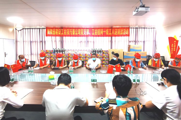 喜迎二十大,永遠(yuǎn)跟黨走。為進(jìn)一步提高黨組織在基層的影響力,增強(qiáng)黨組織在項(xiàng)目工地上的凝聚力,貫徹落實(shí)“項(xiàng)目建在哪,支部就設(shè)在哪”的理念,經(jīng)海南省住建行業(yè)黨委的批準(zhǔn),在黨的二十大召開(kāi)前夕,萬(wàn)泰公司承建的佳元·七彩瀾灣項(xiàng)目臨時(shí)黨支部揭牌儀式暨為一線工人送“清涼”活動(dòng)在項(xiàng)目部現(xiàn)場(chǎng)圓滿舉辦。澄邁縣質(zhì)監(jiān)站黨支部書(shū)記、副站長(zhǎng)蔡芙蓉、王培科長(zhǎng)等一行,公司黨支部、工程部及項(xiàng)目有關(guān)人員參加了本次活動(dòng)。