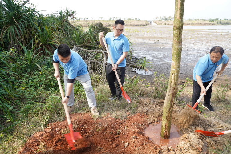 活動(dòng)當(dāng)天,艷陽(yáng)高照,晴空萬(wàn)里,大家紛紛拿著鐵鍬,拎起水桶,以十足的干勁與熱情積極投入到植樹播種中,挖坑、放苗、扶正、填土、澆水,一氣呵成,全然不顧揮灑的汗水。在大家的分工合作下,一棵棵新栽苗木迎風(fēng)挺立,給初春的大地增添了盎然的生機(jī)和蓬勃的朝氣,形成了一道亮麗的風(fēng)景線。海南萬(wàn)泰公司黨支部書記曹珊珊及部分黨員紛紛表示,將會(huì)把本次實(shí)踐活動(dòng)的所學(xué)所感融入到今后工作與生活中,不斷提升自我,努力為建設(shè)美麗新海南不斷地添磚加瓦。