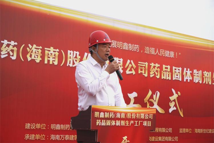 明鑫制藥海南公司董事長金佳樂在致辭中表示該項目建成后將進(jìn)一步提升瓊海市醫(yī)藥服務(wù)水平,希望各參建單位都能夠齊心協(xié)力推進(jìn)項目建設(shè),高標(biāo)準(zhǔn)、高質(zhì)量完成既定施工任務(wù),助力海南自貿(mào)港發(fā)展。