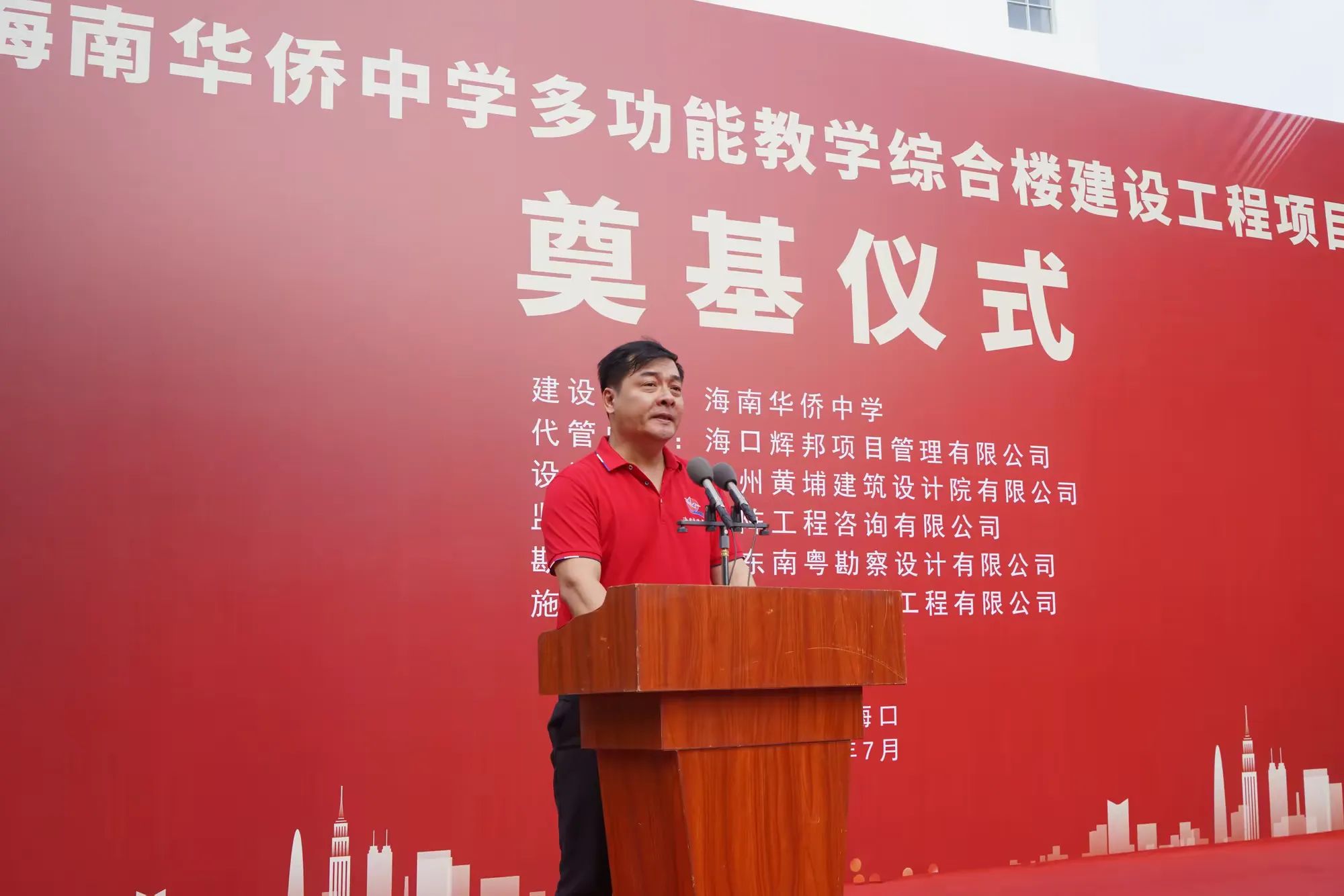 七月綠意爭(zhēng)相艷,書生意氣冠瓊州。7月19日,由海南萬泰建筑工程有限公司承建的海南華僑中學(xué)多功能教學(xué)綜合樓建設(shè)工程項(xiàng)目舉行開工儀式。海口市發(fā)改委黨組成員、副主任莊華東,海南華僑中學(xué)黨委副書記、校長(zhǎng)張偉,黨委委員、副校長(zhǎng)吳撼宇,??谑谐峭都瘓F(tuán)黨委副書記、董事、總經(jīng)理孫傳志以及代管、監(jiān)理、施工單位相關(guān)人員參加了本次活動(dòng)。儀式由海南華僑中學(xué)副校長(zhǎng)吳澤純主持。