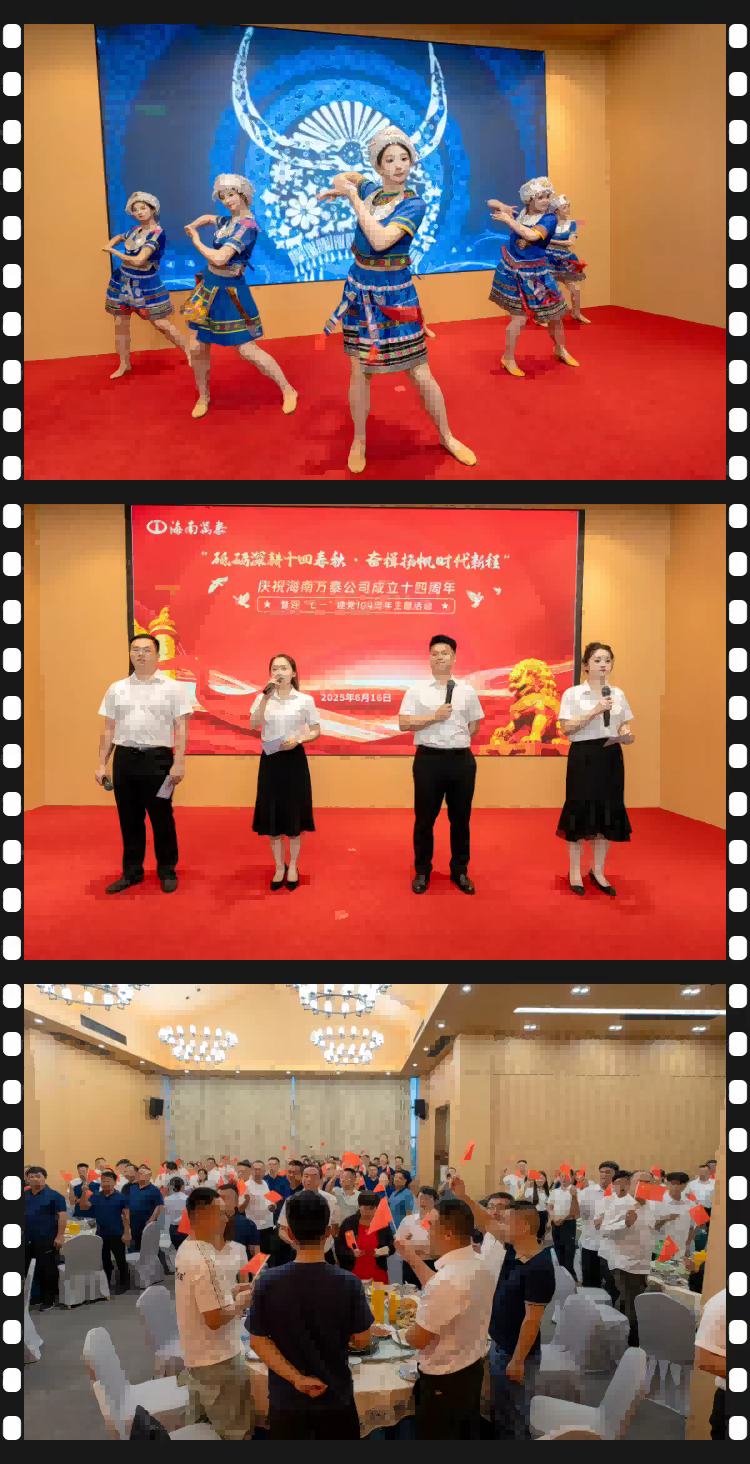 奮斗十四載,歸來亦是春。2025年6月16日,海南萬泰建筑工程有限公司以“砥礪深耕十四春秋 奮楫揚帆時代新程”為主題,在東寨港紅樹林、芳園國際藝術(shù)村及芳園紅色文化園舉行慶祝公司成立十四周年暨迎“七一”建黨104周年主題活動。萬泰公司總經(jīng)理顏利率公司各直屬部門員工150余人齊聚一堂,共同回顧奮斗歷程,汲取紅色力量,擘畫自貿(mào)港建設(shè)新藍圖。