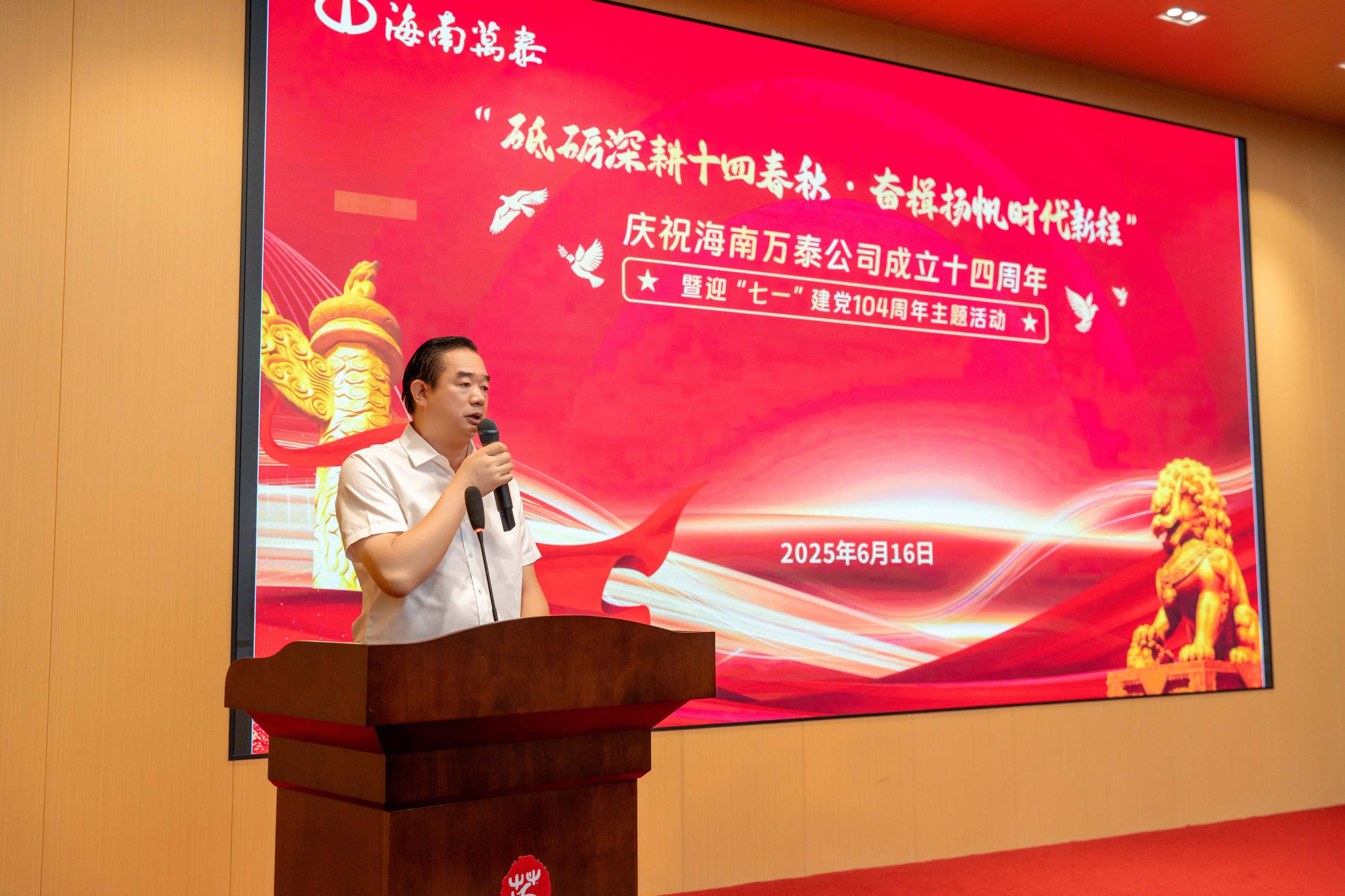 公司總經(jīng)理顏利發(fā)表了熱情洋溢的致辭。顏利首先對各級主管部門以及社會各界在萬泰發(fā)展過程中給予的關(guān)心與支持表示感謝,并深情回顧了公司十四年的發(fā)展歷程,從白手起家到如今在建筑行業(yè)屹立不倒,一路走來充滿艱辛與挑戰(zhàn)。每一個工程項目,都凝聚著大家的心血,都見證了萬泰人的成長與進步。正是這份“鑄萬泰精品,立萬泰豐碑”理念的堅持與執(zhí)著,讓萬泰能夠在激烈的市場競爭中贏得了上級主管部門、社會各界及客戶的信任與認可,獲得了多個榮譽與獎項。他還表示,未來公司將繼續(xù)堅持黨建引領(lǐng),立足中心業(yè)務(wù),以市場需求為導(dǎo)向,持續(xù)為客戶提供優(yōu)質(zhì)服務(wù),打造更多精品工程,并號召全體員工攜手并肩,在自貿(mào)港封關(guān)運作的偉大事業(yè)中貢獻萬泰力量,續(xù)寫輝煌篇章。廣東、湖北分公司以及湖北隆海公司等也通過視頻從遠方發(fā)來了誠摯又溫馨的祝賀。