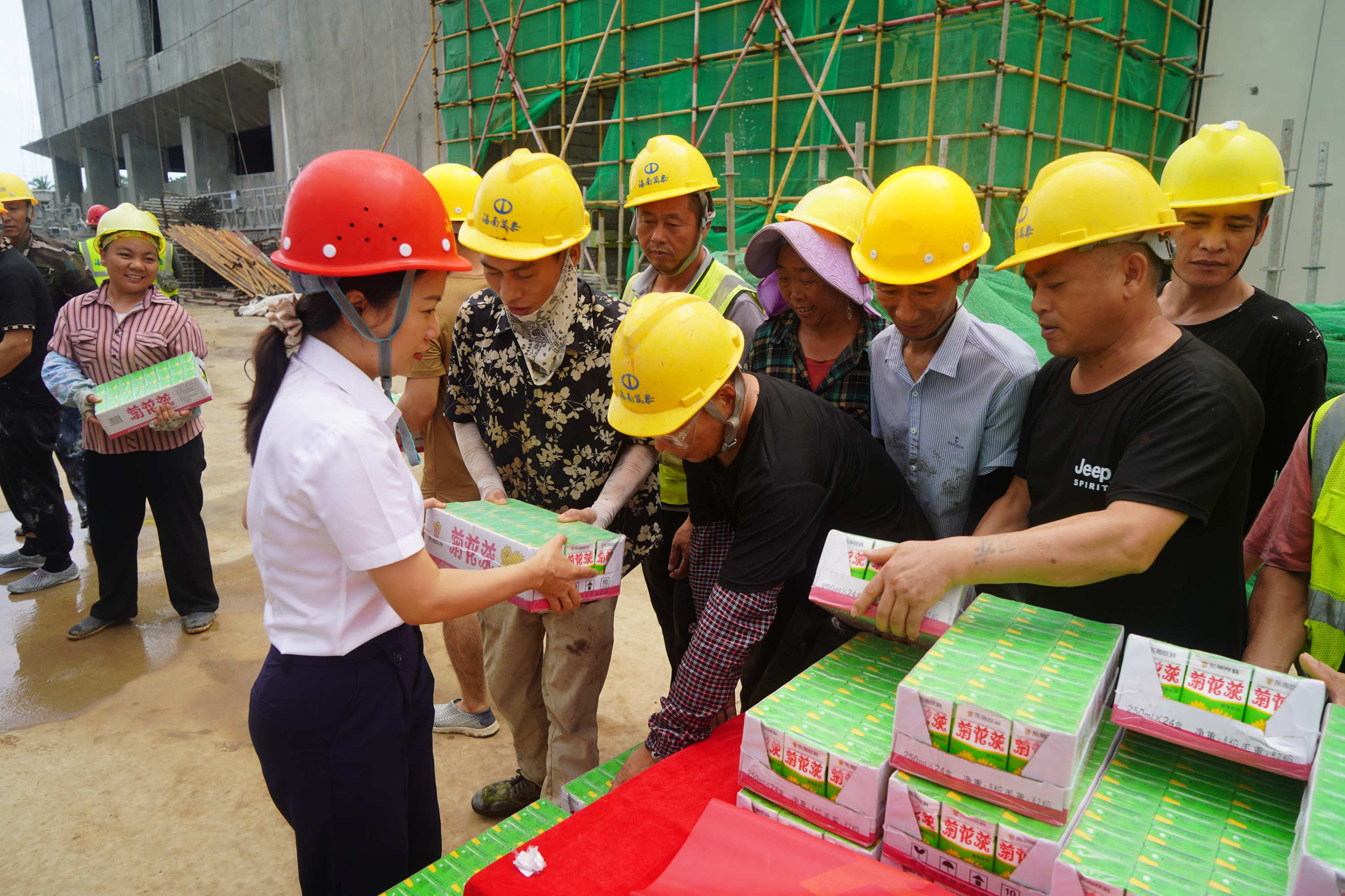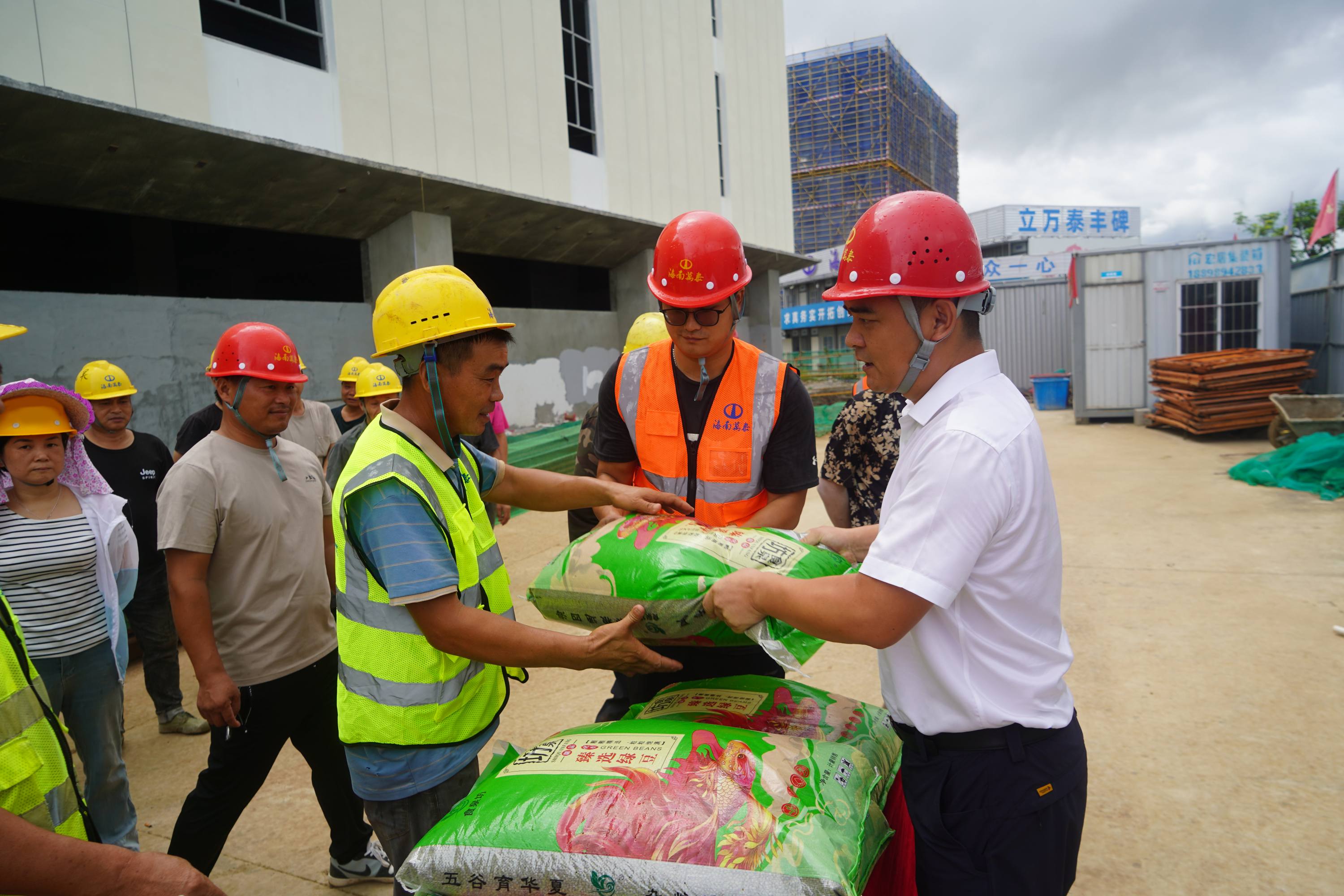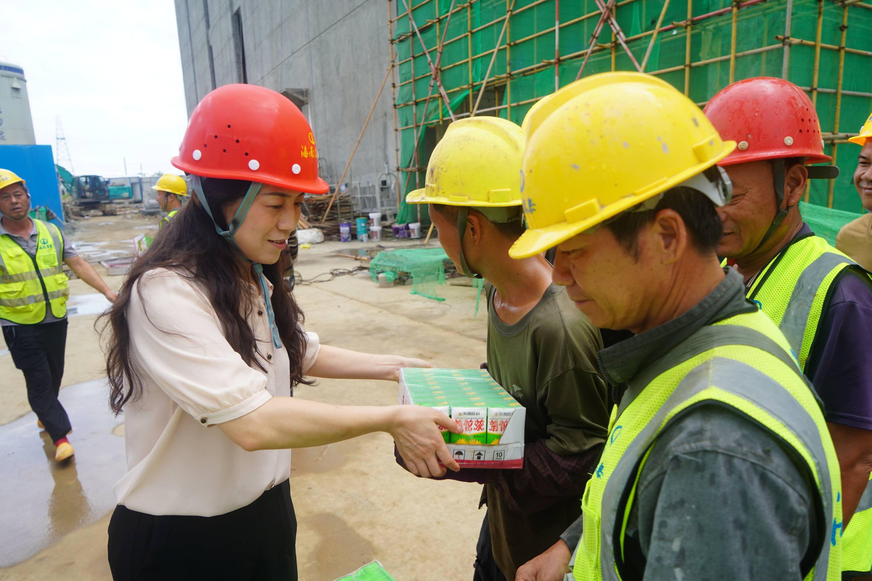 酷暑送清涼,關懷沁人心。2025年9月22日上午,海南萬泰公司黨支部、工會組織前往??诮瓥|新區(qū)國際消費精品產(chǎn)業(yè)港項目工地開展“夏送清涼”慰問一線項目工人活動,為堅守在高溫下的一線工友們送去了綠豆、下火涼茶等防暑降溫物資,在炎炎夏日中為他們帶去了一份清涼與企業(yè)的關懷。公司黨支部、工會、總經(jīng)辦及工程部相關人員參加了本次活動。