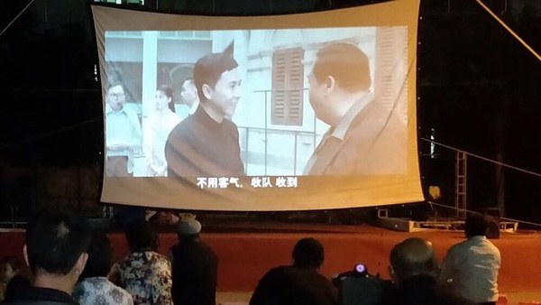 鄉(xiāng)親們齊聚一堂,觀看愛(ài)國(guó)電影