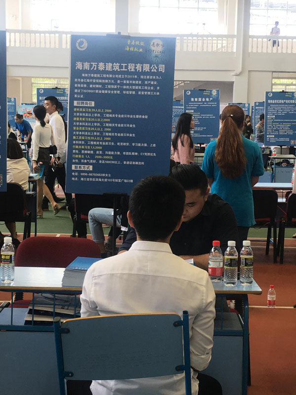 為積極響應(yīng)相關(guān)就業(yè)政策,減輕社會就業(yè)壓力,履行企業(yè)社會責(zé)任,為眾多應(yīng)屆畢業(yè)生提供前景廣闊的就業(yè)崗位,同時,落實推進公司人才建設(shè)計劃,配合公司發(fā)展戰(zhàn)略目標(biāo),進一步強化人才隊伍建設(shè),搭建起企業(yè)招賢引才的開放平臺,11月3日下午,海南萬泰指派行政人事部相關(guān)人員前往桂林洋高校區(qū),參加在??诮?jīng)濟學(xué)院舉辦的大型校園招聘會。