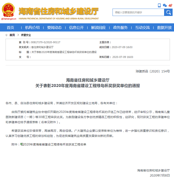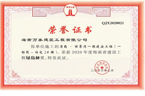海南省建設(shè)工程“綠島杯”代表著海南省工程建設(shè)的最高質(zhì)量水平。海南萬泰公司獲得此項榮譽,不僅是對“清能·麗景灣一期建安工程(一標(biāo)段—住宅2#樓)質(zhì)量的肯定,也是對海南萬泰公司管理水平的肯定。