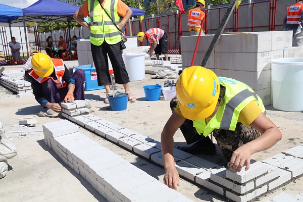 本次競賽隊伍有來自中央駐瓊及省屬大型企事業(yè)單位、各地市企事業(yè)單位,競賽共有砌筑工、鋼筋工2個職業(yè)(工種),砌筑工和鋼筋工各17支單位隊伍,共100多名選手參賽,競賽內(nèi)容均由理論考試和實際操作比賽兩部分組成。公司每個工種各選派出1支隊伍參加了競賽,公司黨支部及工會還組織陣容強大的啦啦隊伍到場為選手助陣。