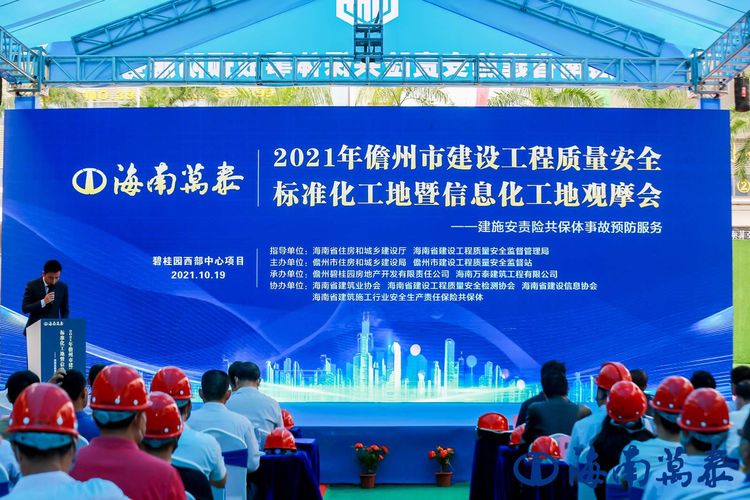 為適應(yīng)海南自貿(mào)港建設(shè)高質(zhì)量發(fā)展要求,進(jìn)一步促進(jìn)海南萬泰項目管理工作,提升建設(shè)工程質(zhì)量安全管理水平,構(gòu)建一個互相交流和學(xué)習(xí)的平臺,2021年10月19日上午,在海南省住房和城鄉(xiāng)建設(shè)廳及儋州市人民政府的大力支持下,由儋州市住房和城鄉(xiāng)建設(shè)局主辦,海南萬泰建筑工程有限公司承辦的“2021年儋州市建設(shè)工程質(zhì)量安全標(biāo)準(zhǔn)化工地暨信息化工地”觀摩會在海南萬泰儋州碧桂園·西部中心項目成功舉辦。海南省住建廳、省質(zhì)安局、儋州市人民政府、儋州市住建局等行政主管部門負(fù)責(zé)人,部分在建項目的建設(shè)、施工、監(jiān)理等單位代表近400人參加了本次觀摩會。