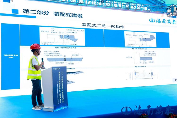 碧桂園儋州片區(qū)負(fù)責(zé)人牛孝峰分享了建設(shè)工程質(zhì)量安全標(biāo)準(zhǔn)化暨裝配式建造工藝,并代表碧桂園海南區(qū)域表態(tài),定將做好裝配式建造推廣工作,大力提升發(fā)展裝配式項目的質(zhì)量和效益,為海南自貿(mào)港建設(shè)扛起我們的責(zé)任擔(dān)當(dāng)。