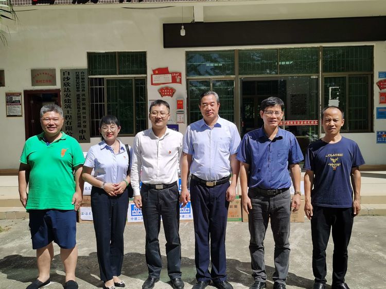 座談會結束后,參加本次黨日活動的企業(yè)向當?shù)厝罕娰浻枇擞兔?、書包等學習生活用品,隨后在省質(zhì)安局的帶領下,參觀了由海南一建承建的白沙縣第一小學建設項目工地。