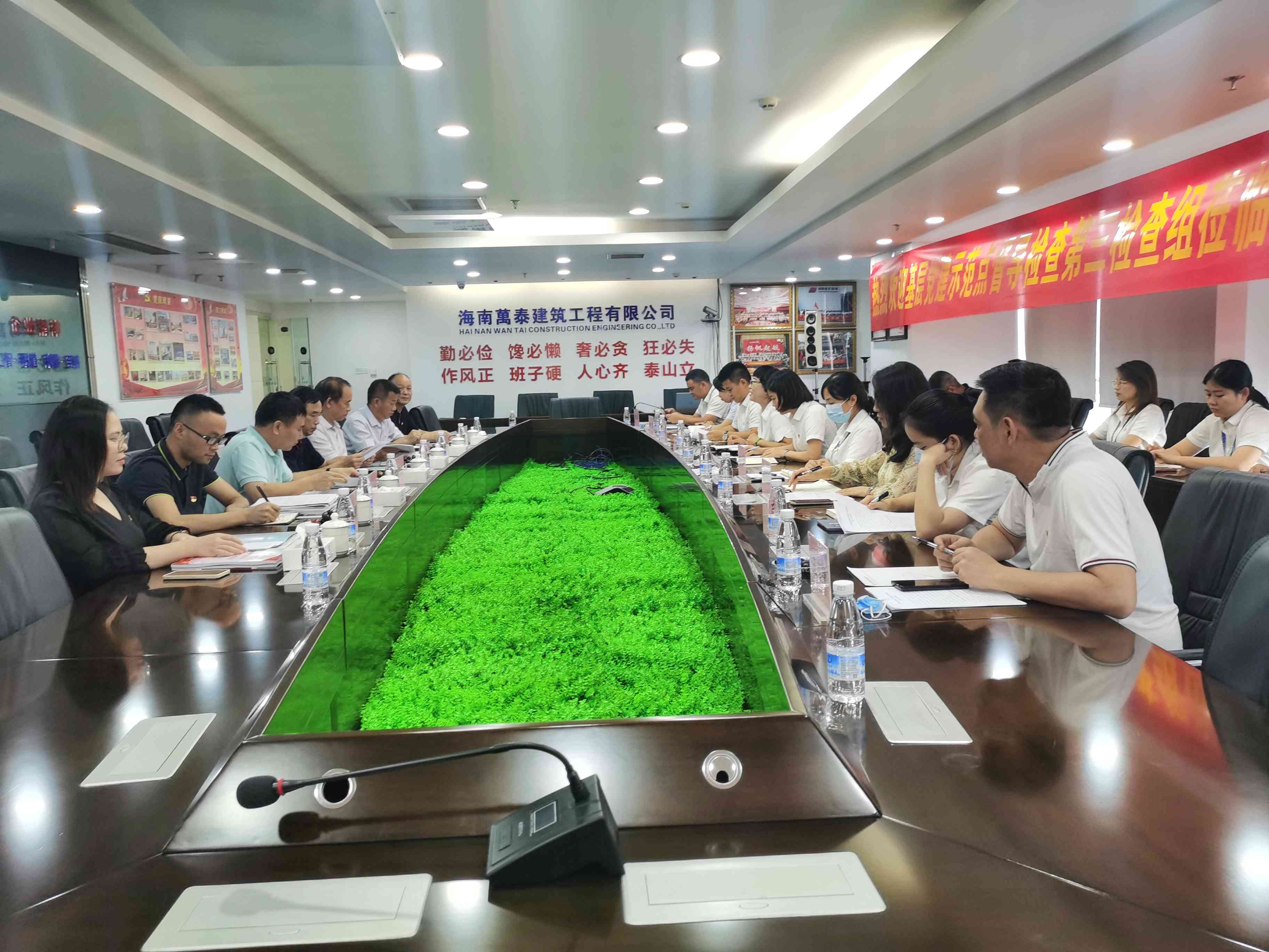 為進一步推動基層黨組織工作的開展,鞏固基層黨建示范點創(chuàng)建活動成果,確保年度創(chuàng)建目標如期完成,2022年10月9日,省委兩新組織工委基層黨建示范點督導檢查第三檢查組組長韓疇、省住建行業(yè)黨委專職副書記李述朝等一行蒞臨海南萬泰,對公司黨建工作進行檢查指導。海南萬泰黨支部黨員、發(fā)展對象和入黨積極分子一同參加了本次會議。