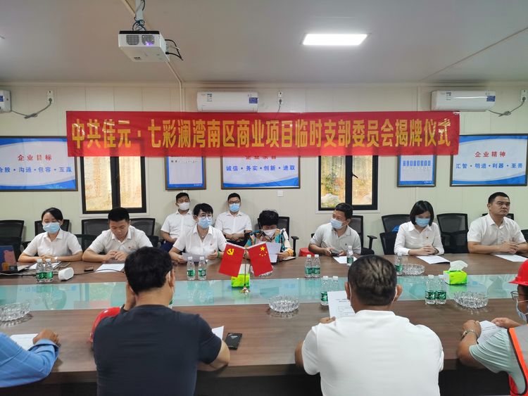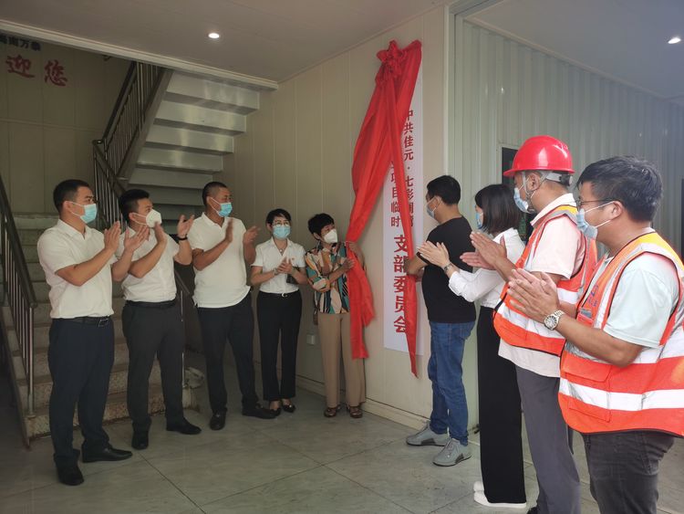 在主持人的指引下,大家移步為佳元·七彩瀾灣項(xiàng)目臨時(shí)黨支部進(jìn)行了揭牌,標(biāo)志著項(xiàng)目黨建工作邁上了新臺(tái)階,為項(xiàng)目部各項(xiàng)工作的開(kāi)展奠定了組織基礎(chǔ)。