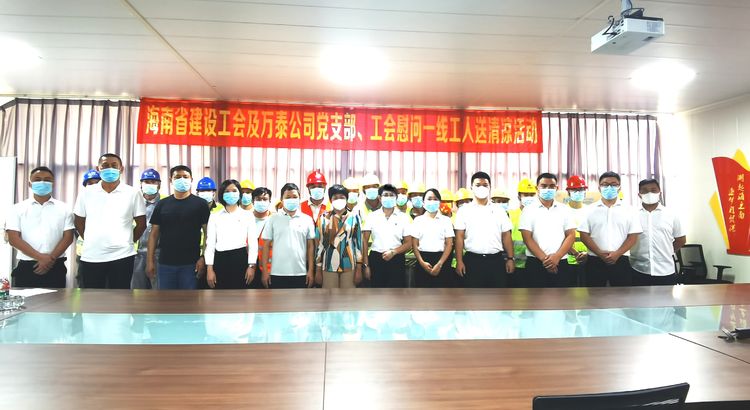 喜迎二十大,永遠(yuǎn)跟黨走。為進(jìn)一步提高黨組織在基層的影響力,增強(qiáng)黨組織在項(xiàng)目工地上的凝聚力,貫徹落實(shí)“項(xiàng)目建在哪,支部就設(shè)在哪”的理念,經(jīng)海南省住建行業(yè)黨委的批準(zhǔn),在黨的二十大召開(kāi)前夕,萬(wàn)泰公司承建的佳元·七彩瀾灣項(xiàng)目臨時(shí)黨支部揭牌儀式暨為一線工人送“清涼”活動(dòng)在項(xiàng)目部現(xiàn)場(chǎng)圓滿舉辦。澄邁縣質(zhì)監(jiān)站黨支部書(shū)記、副站長(zhǎng)蔡芙蓉、王培科長(zhǎng)等一行,公司黨支部、工程部及項(xiàng)目有關(guān)人員參加了本次活動(dòng)。