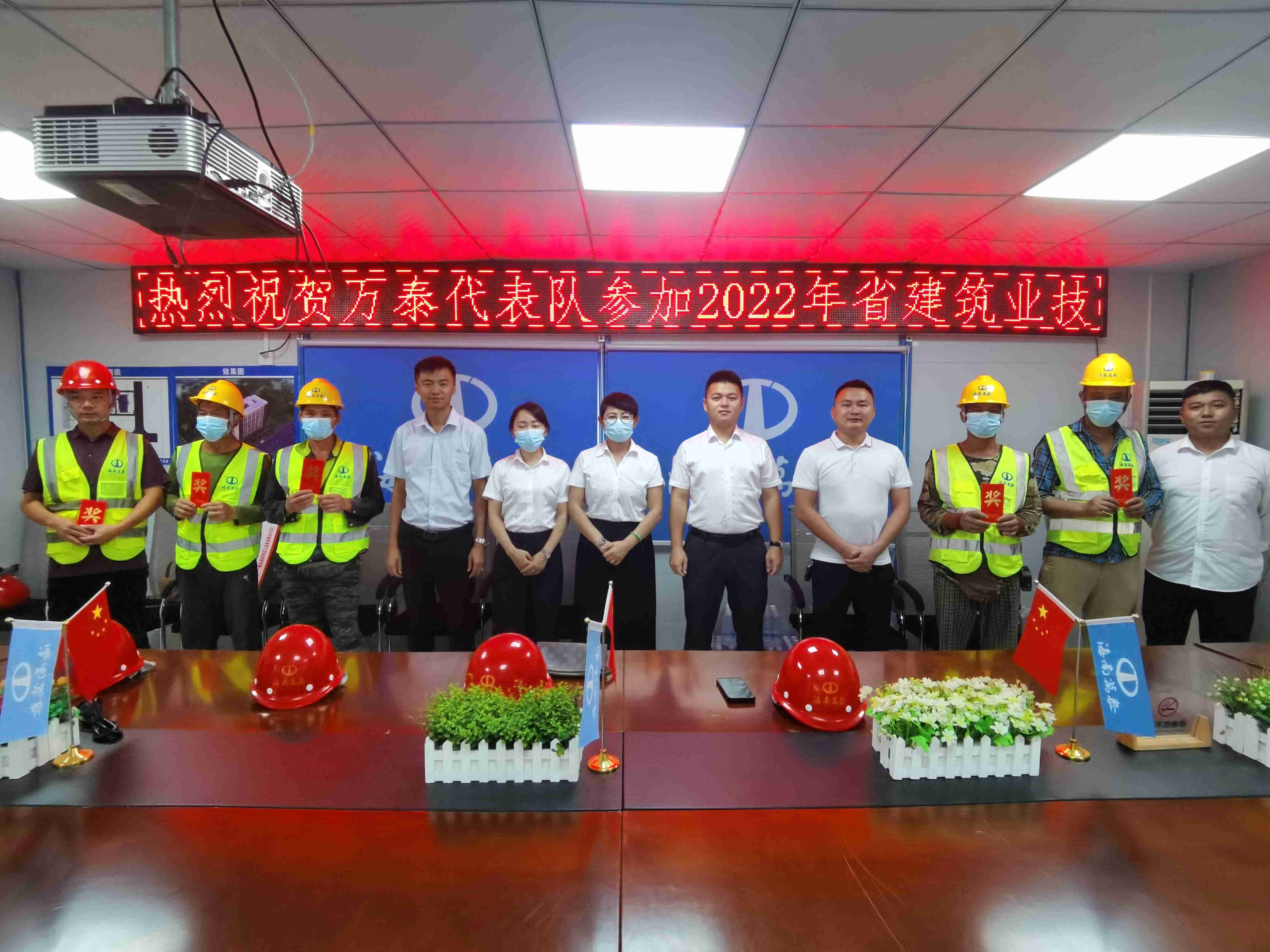 為了學(xué)習(xí)貫徹黨的二十大報(bào)告,把二十大精神落實(shí)到推動(dòng)企業(yè)高質(zhì)量發(fā)展過(guò)程中,表彰先進(jìn),樹(shù)立典型,進(jìn)一步增強(qiáng)員工的自豪感、集體榮譽(yù)感及團(tuán)隊(duì)凝聚力,2022年11月18日,在省建設(shè)工會(huì)的支持下,海南萬(wàn)泰公司組織人員到公司承建的瓊海金輝雅苑項(xiàng)目部,對(duì)在參加2022年省建筑業(yè)職業(yè)職工技能競(jìng)賽中榮獲木工三等獎(jiǎng)的孫仲文團(tuán)隊(duì)進(jìn)行了表彰,并召開(kāi)了座談交流會(huì),會(huì)上大家學(xué)習(xí)了二十大報(bào)告有關(guān)章節(jié),分享交流比賽心得,以此樹(shù)立先進(jìn)標(biāo)桿,鼓舞工人干勁。公司黨支部、工會(huì)、工程部以及金輝雅苑項(xiàng)目部管理人員及一線工人等參加本次活動(dòng)。