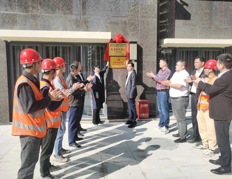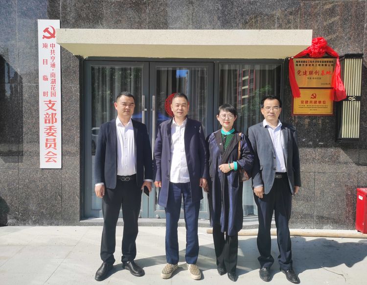 當(dāng)日上午,海南萬泰公司黨支部、工程部,白沙亨通集團(tuán)董事長(zhǎng)周金華、亨通·南湖花園項(xiàng)目臨時(shí)黨支部書記何承中、項(xiàng)目總負(fù)責(zé)人劉普等有關(guān)人員共同為黨建聯(lián)建共創(chuàng)基地進(jìn)行揭牌。