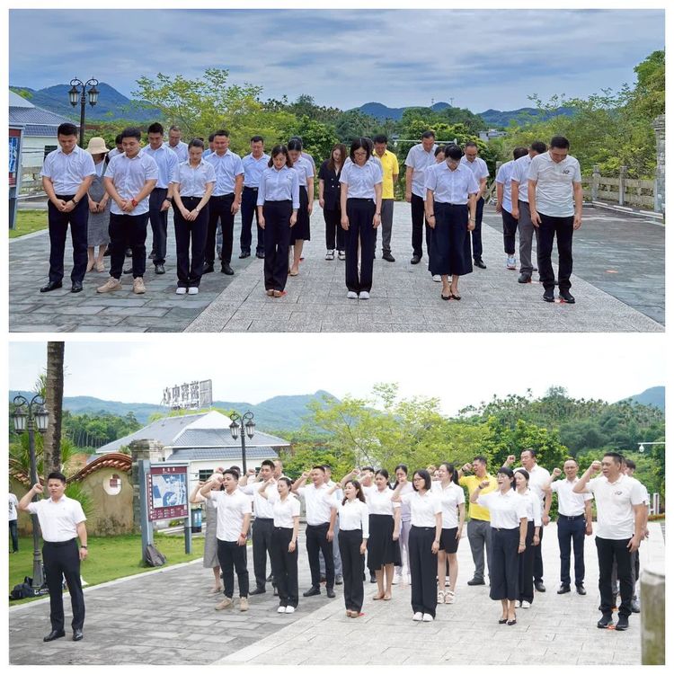 活動(dòng)第一站來到了定安縣母瑞山革命根據(jù)地紀(jì)念園。大家首先參觀了革命歷史博物館,一張張革命的照片展現(xiàn)了母瑞山紅軍革命奮斗史,一件件無聲的遺物令人夢(mèng)回曾經(jīng)革命時(shí)代。通過認(rèn)真聆聽博物館講解員的娓娓道來,生動(dòng)形象的講述,大家深入了解了母瑞山革命根據(jù)地的發(fā)展歷程,這個(gè)地方曾在瓊崖人民堅(jiān)持武裝斗爭二十三年紅旗不倒光輝歷程中起到了舉足輕重的作用,凝結(jié)著“崇高理想、堅(jiān)定信念,勇于獻(xiàn)身,相信群眾、依靠群眾,自力更生、艱苦奮斗”的母瑞山精神,對(duì)那段艱苦卓絕的歲月有了新的認(rèn)識(shí)和領(lǐng)悟。隨后,黨員們懷著對(duì)革命烈士崇敬的心情,在王文明、馮白駒的銅像前為革命先輩默哀一分鐘和三鞠躬,并重溫了入黨誓詞。