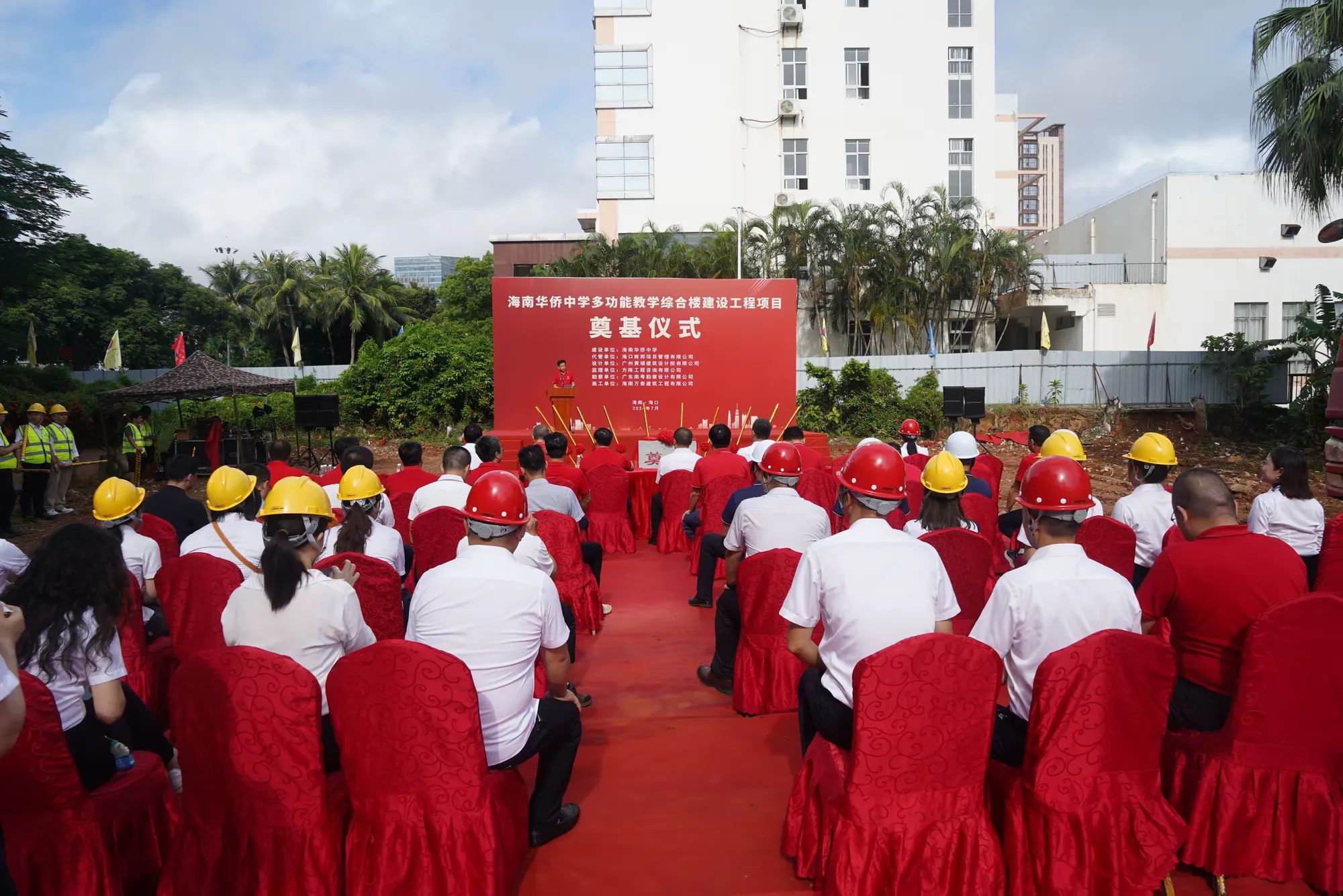 七月綠意爭相艷,書生意氣冠瓊州。7月19日,由海南萬泰建筑工程有限公司承建的海南華僑中學(xué)多功能教學(xué)綜合樓建設(shè)工程項目舉行開工儀式。??谑邪l(fā)改委黨組成員、副主任莊華東,海南華僑中學(xué)黨委副書記、校長張偉,黨委委員、副校長吳撼宇,??谑谐峭都瘓F(tuán)黨委副書記、董事、總經(jīng)理孫傳志以及代管、監(jiān)理、施工單位相關(guān)人員參加了本次活動。儀式由海南華僑中學(xué)副校長吳澤純主持。
