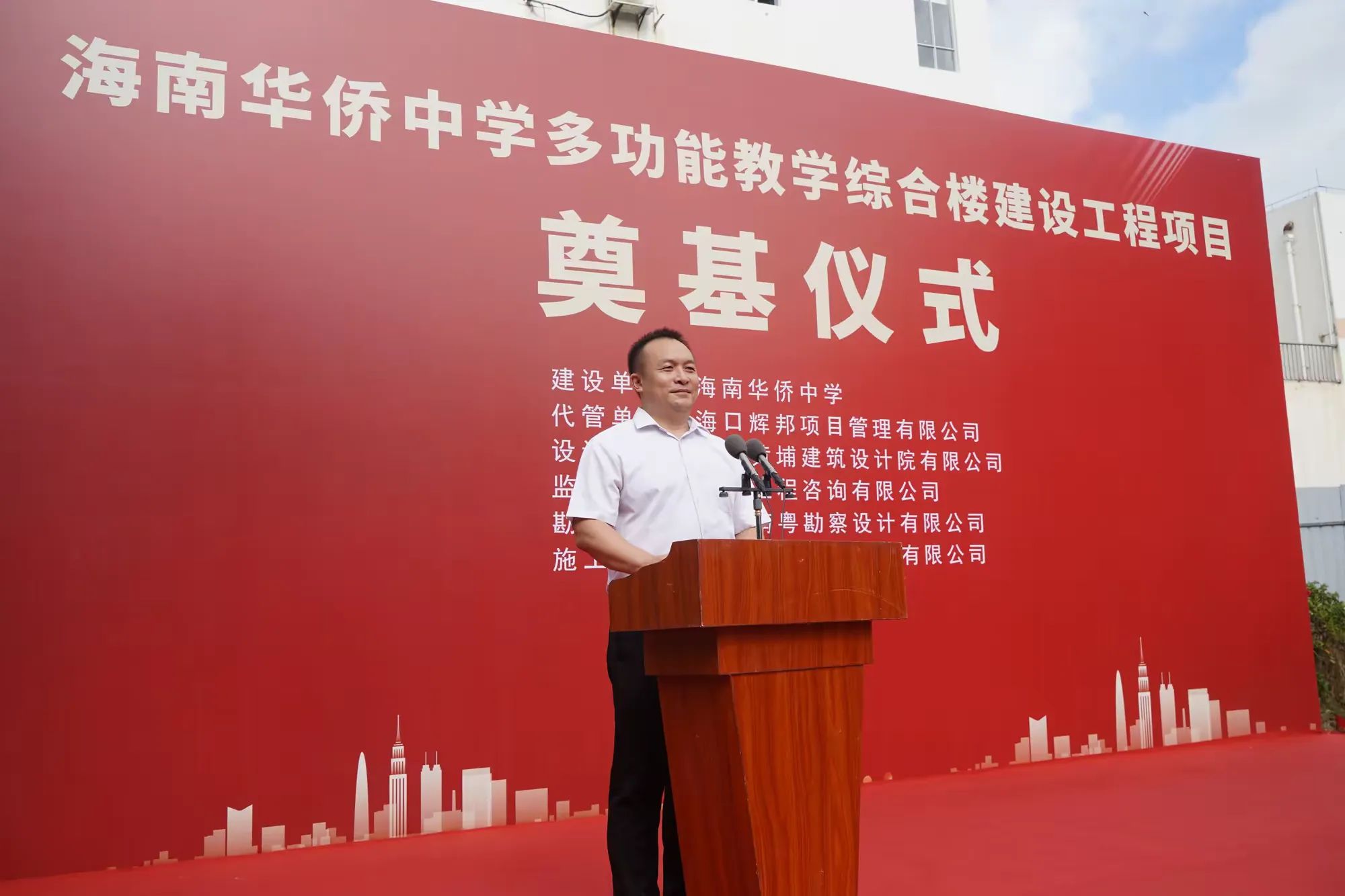 在開工儀式上,海南華僑中學(xué)黨委副書記、校長張偉在講話中指出百年大計,質(zhì)量第一。施工單位要嚴(yán)格按照設(shè)計要求和施工標(biāo)準(zhǔn),精心組織,科學(xué)施工,監(jiān)理單位要認(rèn)真履行職責(zé),嚴(yán)格把關(guān),高標(biāo)準(zhǔn)質(zhì)檢,一定要確保工程質(zhì)量和安全。各參建單位要嚴(yán)格、認(rèn)真履職,齊心協(xié)力、高效協(xié)同、攻堅克難,為廣大師生提供一個教學(xué)設(shè)備更加先進(jìn),教學(xué)設(shè)施更為完善,學(xué)習(xí)環(huán)境更為優(yōu)美的學(xué)習(xí)場所。