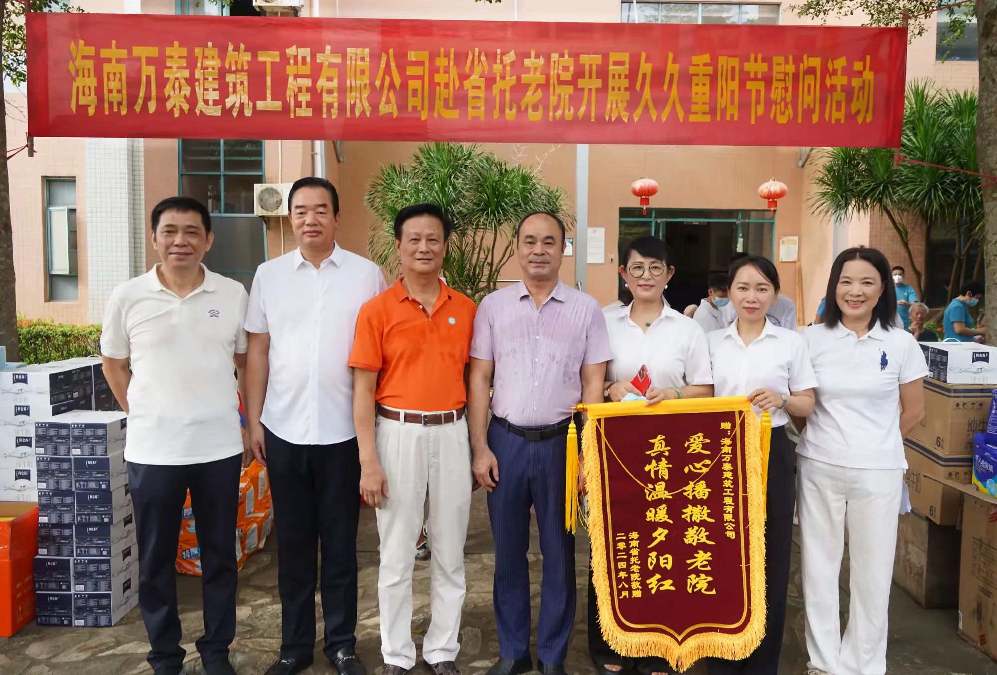 8月19日,為進(jìn)一步發(fā)揚企業(yè)愛心之舉,傳播敬老愛老養(yǎng)老的優(yōu)秀傳統(tǒng)文化精神,在中秋、重陽節(jié)即將到來之際,海南萬泰建筑工程有限公司參加了由海口市龍華區(qū)關(guān)工委、龍華區(qū)金貿(mào)街道商會、海南愛心企家團隊聯(lián)合舉辦的慰問活動。公司總經(jīng)理顏利及黨支部、工會有關(guān)人員參加本次活動。