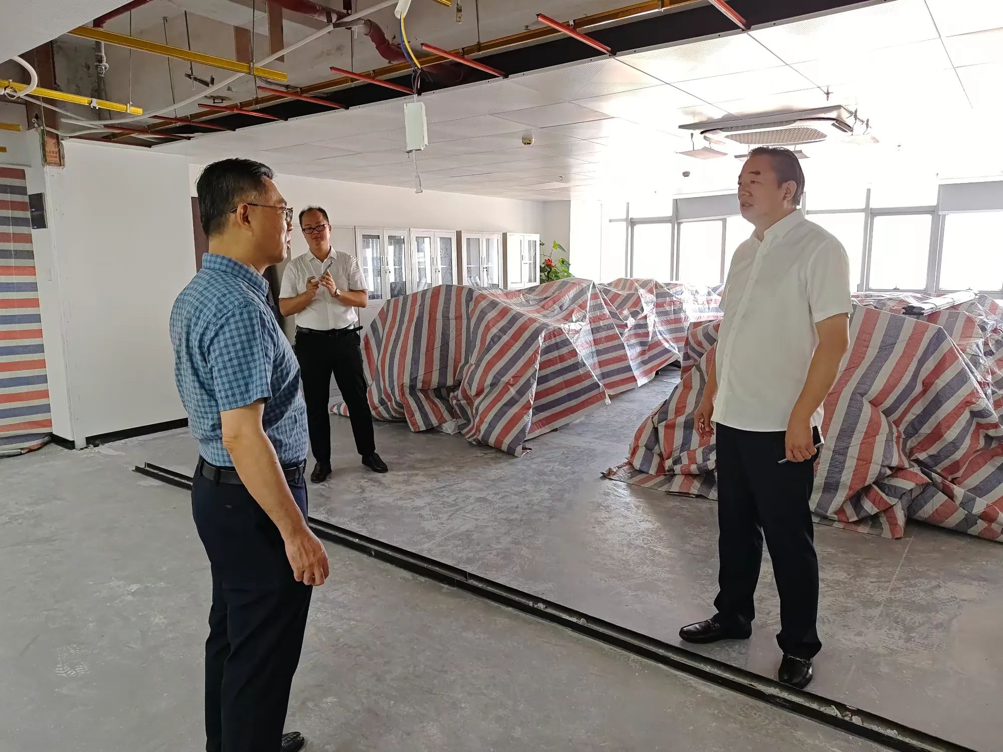 林青主委一行在公司總經(jīng)理顏利的帶領(lǐng)下查看了公司幾個(gè)因臺(tái)風(fēng)“摩羯”而受損的辦公區(qū)域。在調(diào)研座談會(huì)上,公司總經(jīng)理顏利通過PPT圖片形式向林青主委一行介紹了本次受災(zāi)受損情況,企業(yè)辦公區(qū)域積水、滲水嚴(yán)重,吊頂脫落、玻璃吹碎、設(shè)備損壞,多個(gè)項(xiàng)目部及工人生活區(qū)板房被吹塌、設(shè)備及電箱圍墻等受到嚴(yán)重破壞。顏利總表示,上述問題給企業(yè)造成了巨大的經(jīng)濟(jì)損失,嚴(yán)重影響了復(fù)工復(fù)產(chǎn)的進(jìn)度,請(qǐng)各級(jí)政府部門能夠給予廣大企業(yè)更多的關(guān)懷和幫助,出臺(tái)政策及措施助力企業(yè)走出困境。