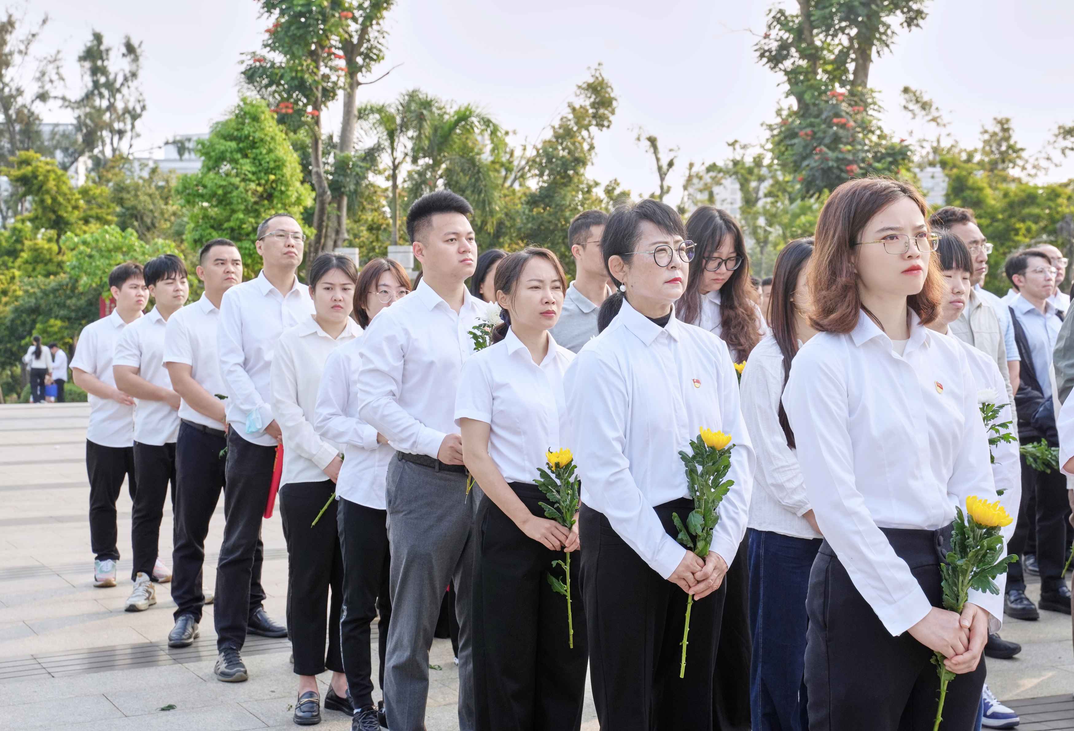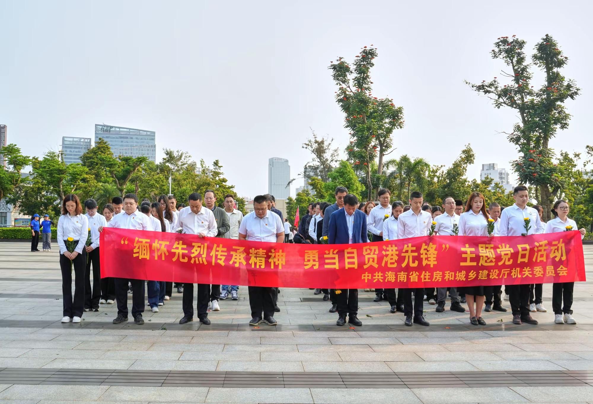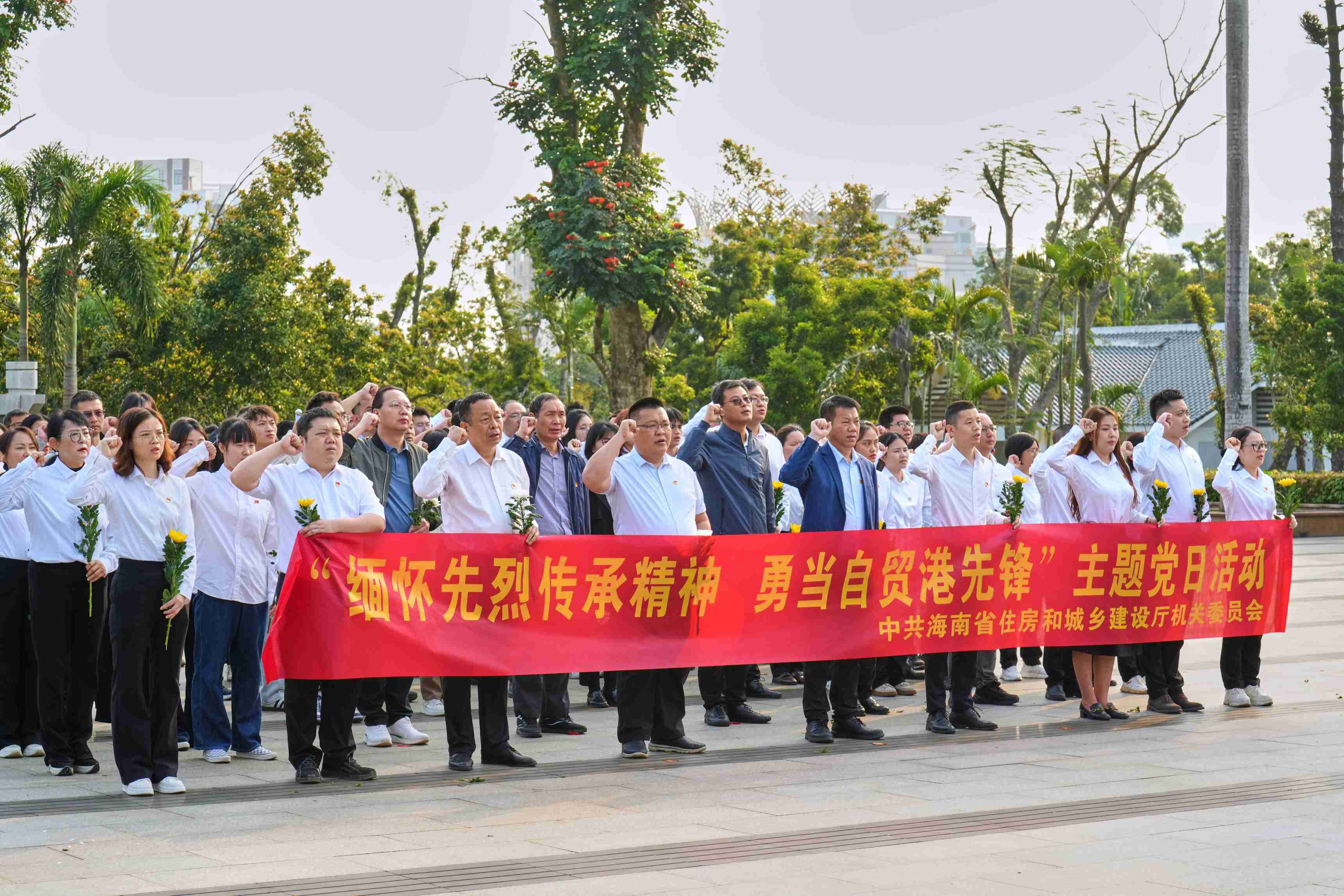 上午8時,來自省住建廳相關(guān)處室以及建筑行業(yè)相關(guān)基層黨組織,共90余名黨員、入黨積極分子齊聚??谑薪夥藕D蠉u戰(zhàn)役烈士陵園。大家身著統(tǒng)一淺色上衣、深色下裝,佩戴黨徽,整齊列隊,在莊嚴肅穆的烈士紀念碑前肅立。