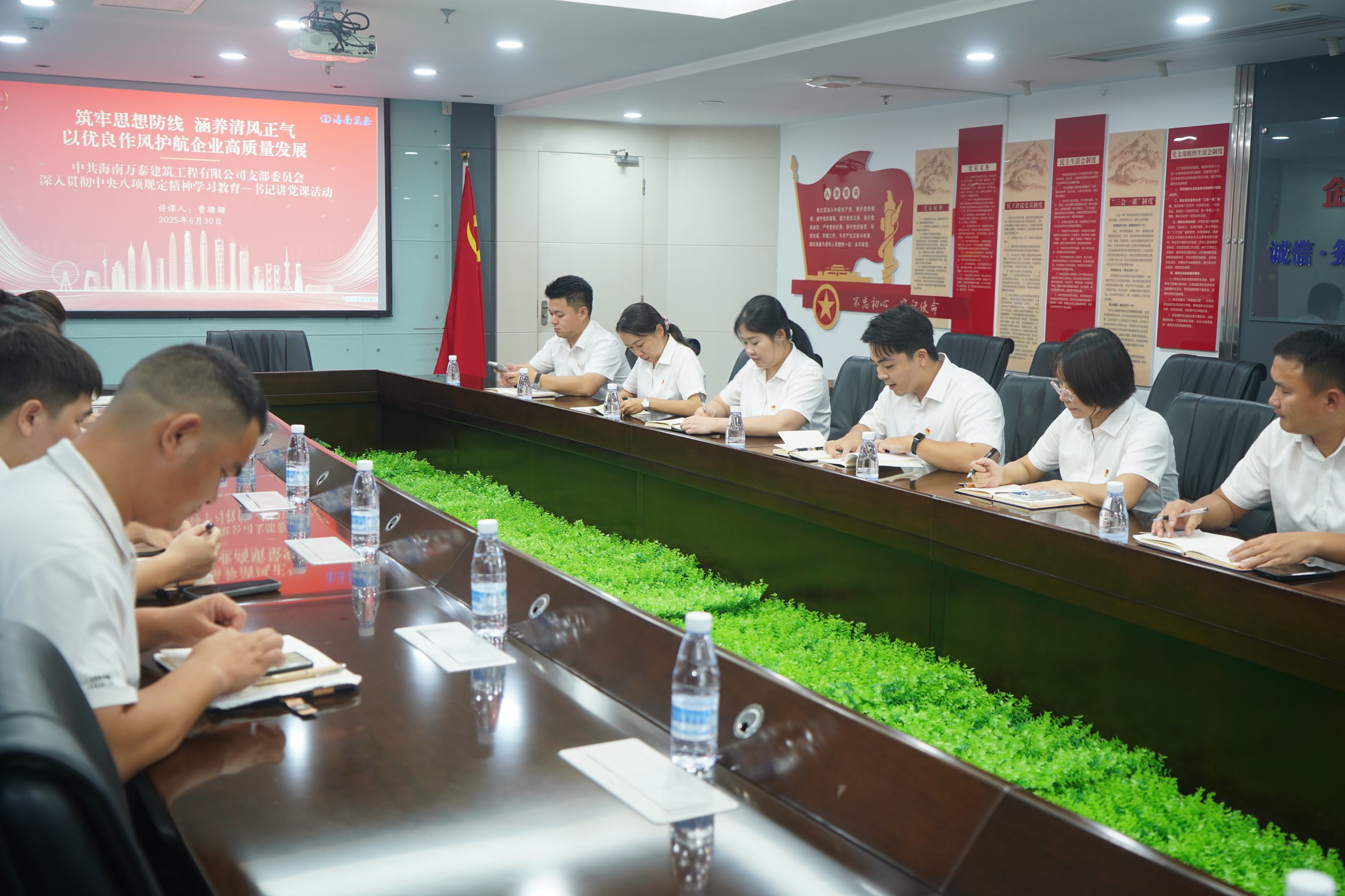 為深入貫徹中央八項規(guī)定精神學習教育,引導黨員干部學深悟透,6 月 30 日下午,海南萬泰公司黨支部在黨建會議室組織開展了深入貫徹中央八項規(guī)定精神學習教育暨書記講黨課活動。本次會議由黨支部書記曹珊珊主持,旨在進一步強化黨員干部的作風建設,推動公司高質量發(fā)展。支部黨員及入黨積極分子參加了本次活動。
