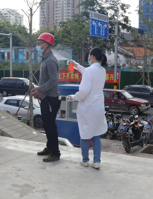 對(duì)一線建設(shè)者逐一進(jìn)行消毒