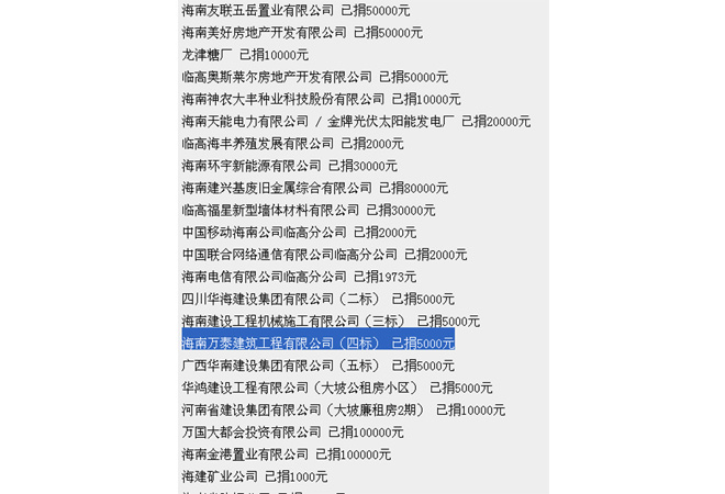2013年臨高縣“愛心助學·陽光行動”企業(yè)捐款