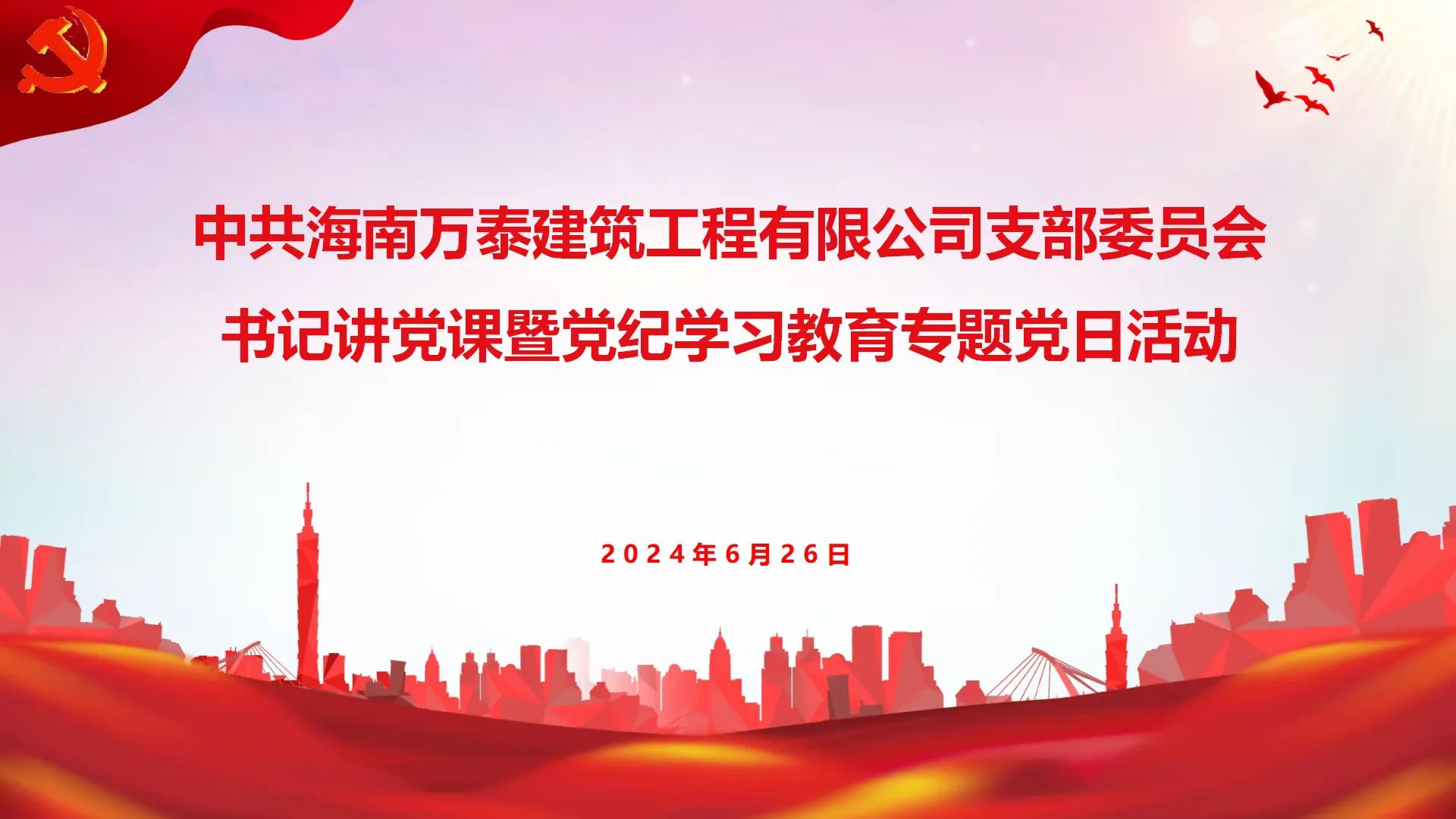 為深入開展好黨紀(jì)學(xué)習(xí)教育工作,按照省住建行業(yè)黨委的統(tǒng)一安排,結(jié)合公司黨支部黨紀(jì)學(xué)習(xí)教育工作方案,6月26日下午,黨支部組織黨員、積極分子及部分職工召開了書記講黨課暨黨紀(jì)學(xué)習(xí)教育專題黨日活動(dòng)。6月26日下午,黨支部組織黨員、積極分子及部分職工召開了書記講黨課暨黨紀(jì)學(xué)習(xí)教育專題黨日活動(dòng)。6月27日,為深入貫徹習(xí)近平總書記關(guān)于全面加強(qiáng)黨的紀(jì)律建設(shè)的重要論述,增強(qiáng)黨員黨性修養(yǎng),牢固樹立紀(jì)律意識和規(guī)矩意識,助力企業(yè)高質(zhì)量發(fā)展,在七一建黨103周年到來之際,海南萬泰公司黨支部聯(lián)合海墾基建公司黨支部在海瑞文化公園舉辦“迎七一”建黨103周年主題黨日活動(dòng)。